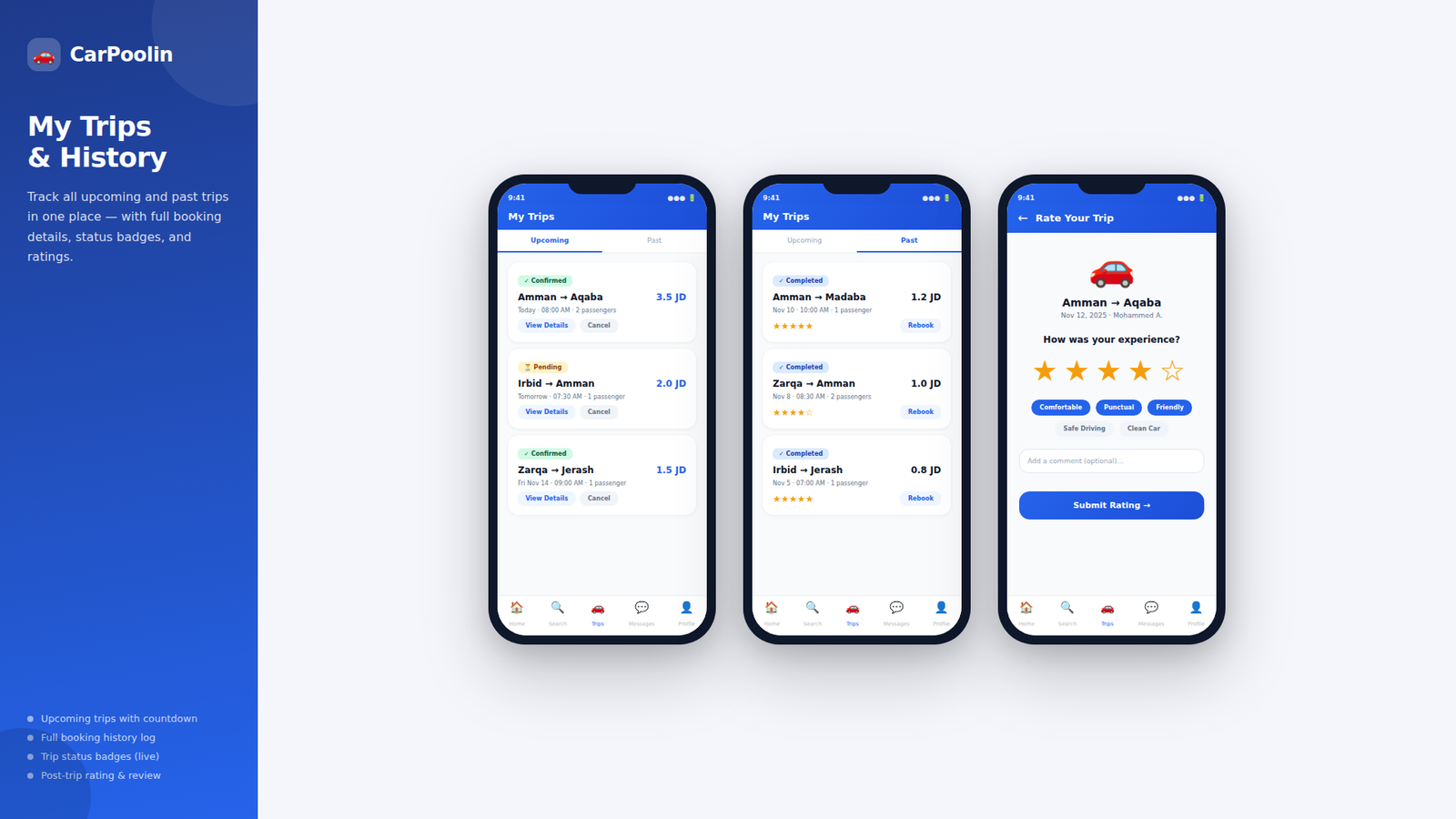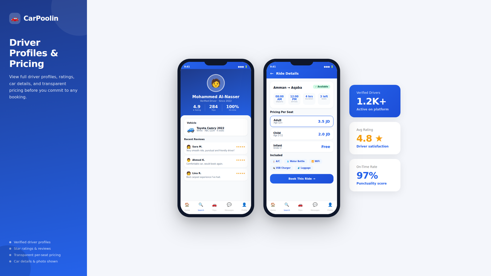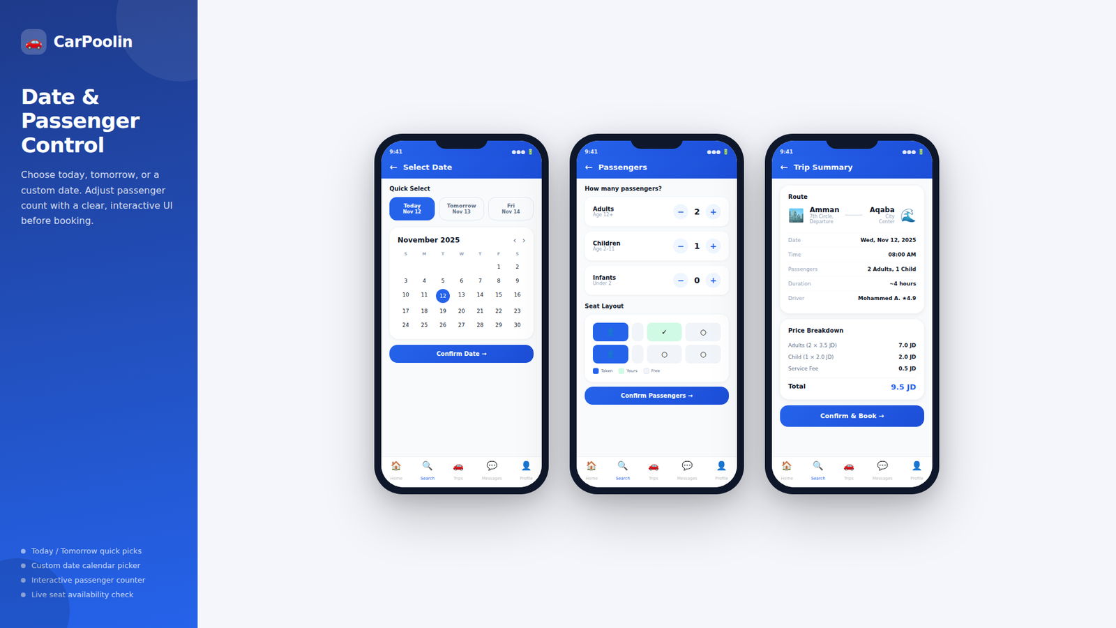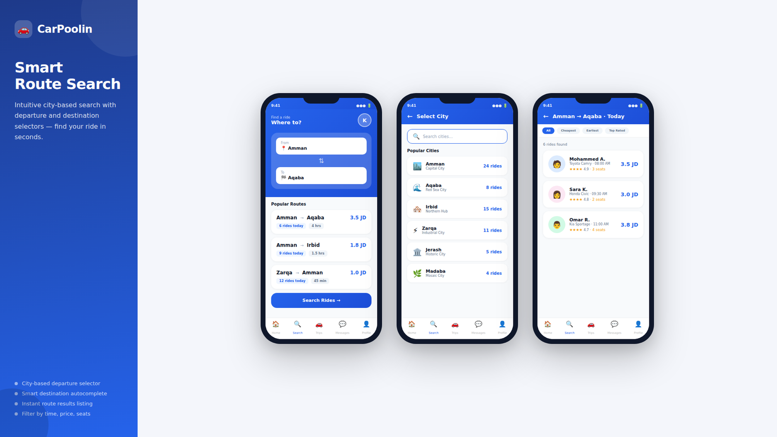 A modern ride-sharing platform designed for affordable commuting, flexible travel dates, and seamless driver connections.