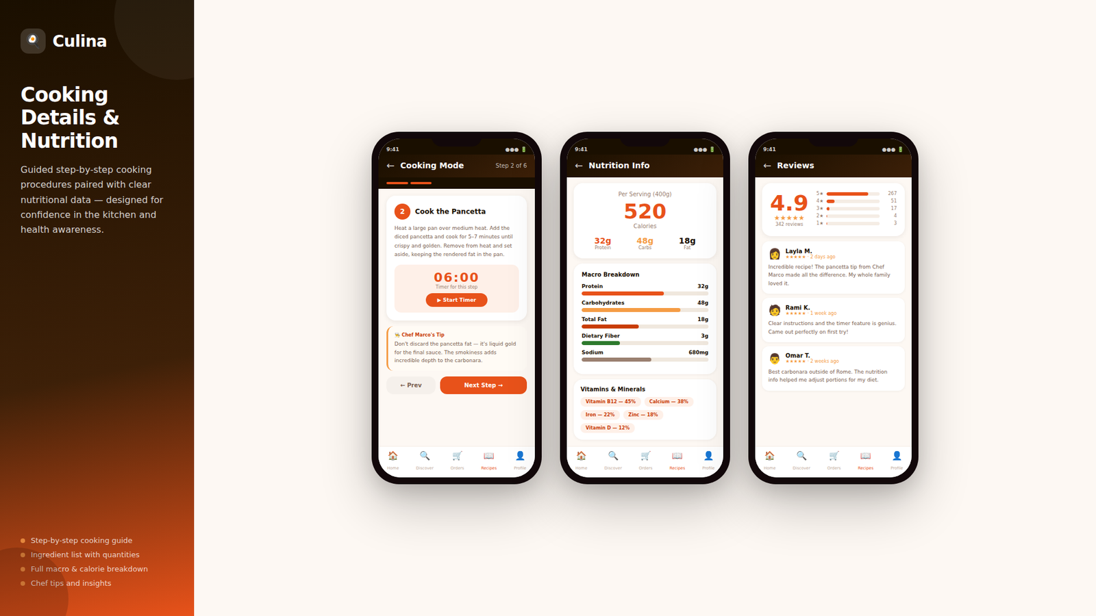 A smart cooking companion offering premium recipes, personalized collections, and detailed daily nutritional health insights.