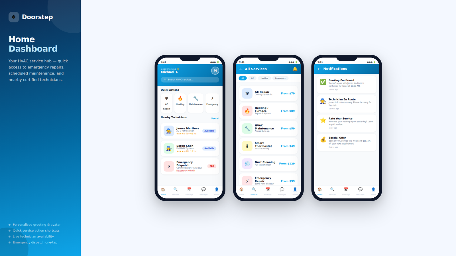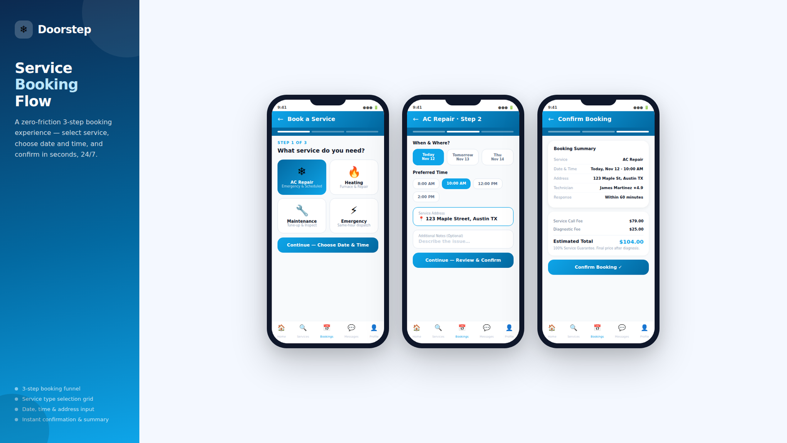 In an industry where immediate, reliable access to home repairs is absolutely essential for comfort, Doorstep set out to transform the heating and cooling landscape. We partnered with Doorstep to build a comprehensive, user friendly service booking and location management platform.