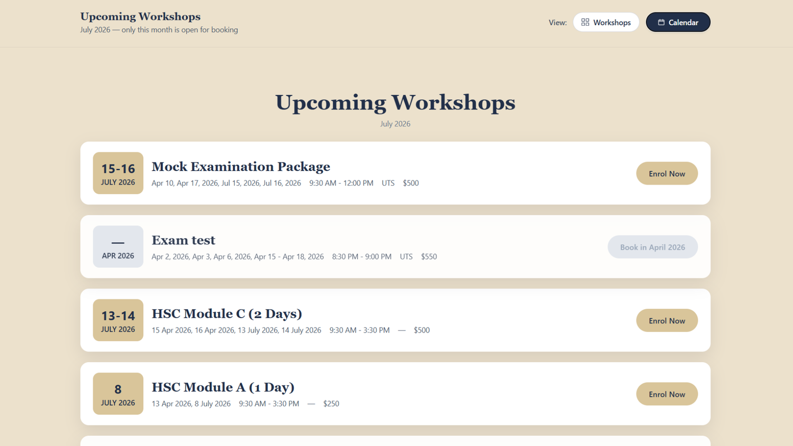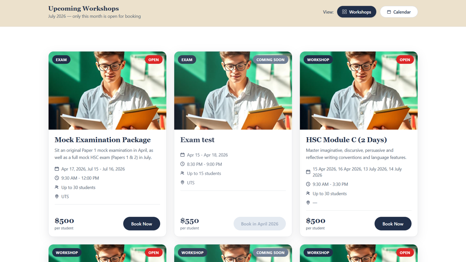 Designed for both ambitious high school students and dedicated teaching professionals, this custom digital software effectively bridges the gap between those seeking academic growth and those providing it. It modernizes workshop management while giving students an intuitive, completely seamless path to enrolling online.