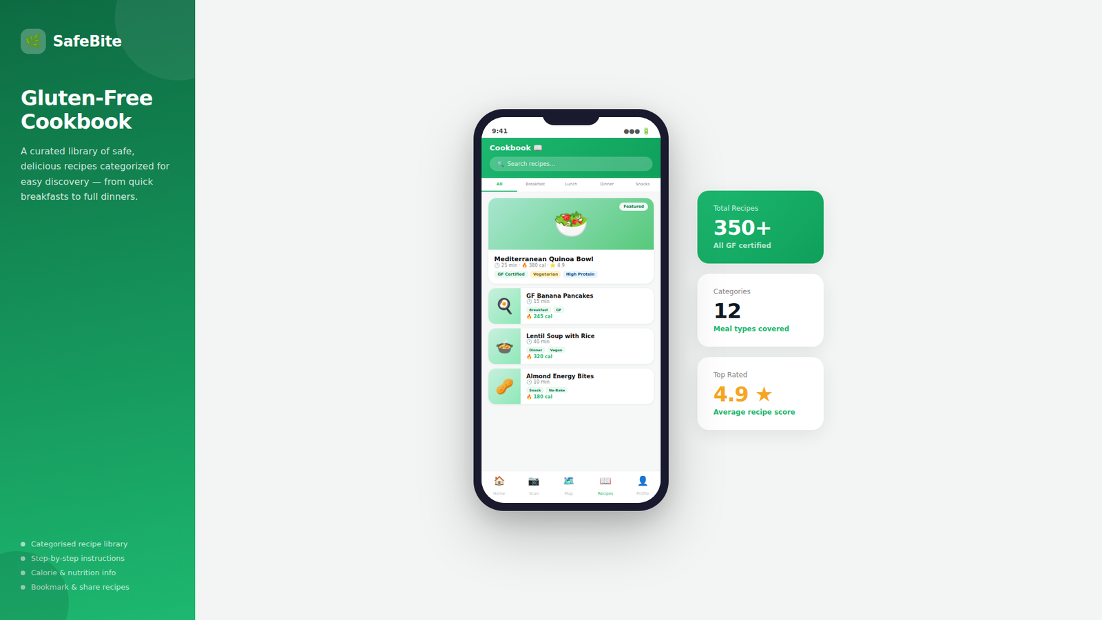 A smart gluten-free companion designed for confident food choices, safe recipes, and instant product verification.