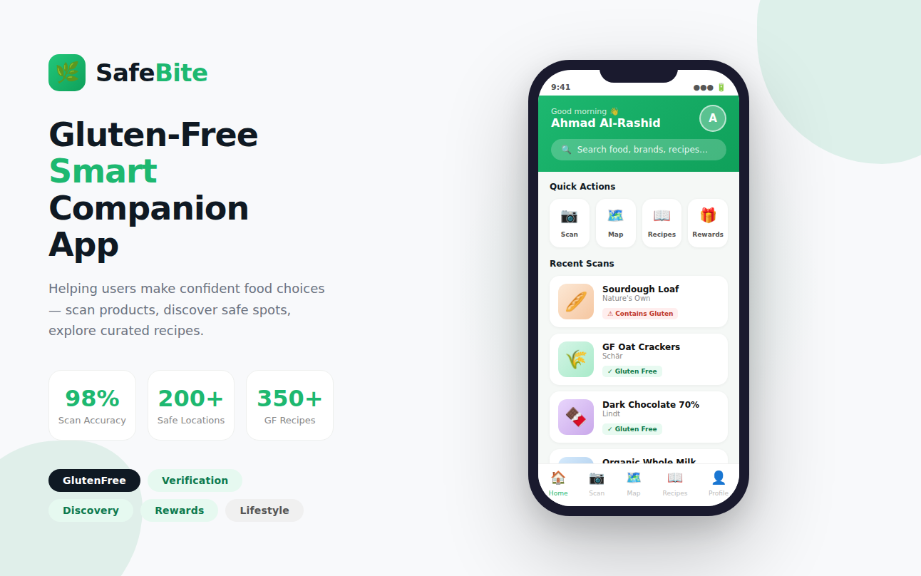 In a world where strict dietary needs and safe food sourcing are absolutely essential for managing healthy lifestyles, SafeBite set out to transform modern gluten-free dining. We proudly partnered with their expert team to build a highly comprehensive, perfectly intuitive application.